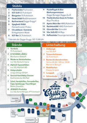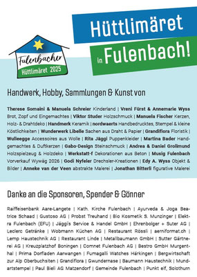 Die Organisatoren des Fulenbacher Hüttlimärets, die Standbetreiber und alle musikalischen Darbieter freuen sich sehr, wenn Sie den Anlass besuchen!