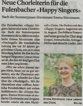 Für die Berichterstattung und Zeitungseinträge rund um die Happy Singers zeichnet sich