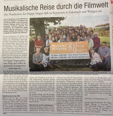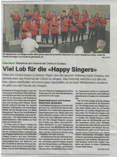 Im Gemeindebrief der reformierten Kirchgemeinde Gäu, Egerkingen und Fulenbach ist in der Oktober-Ausgabe ein Beitrag über die Happy Singers abgedruckt.